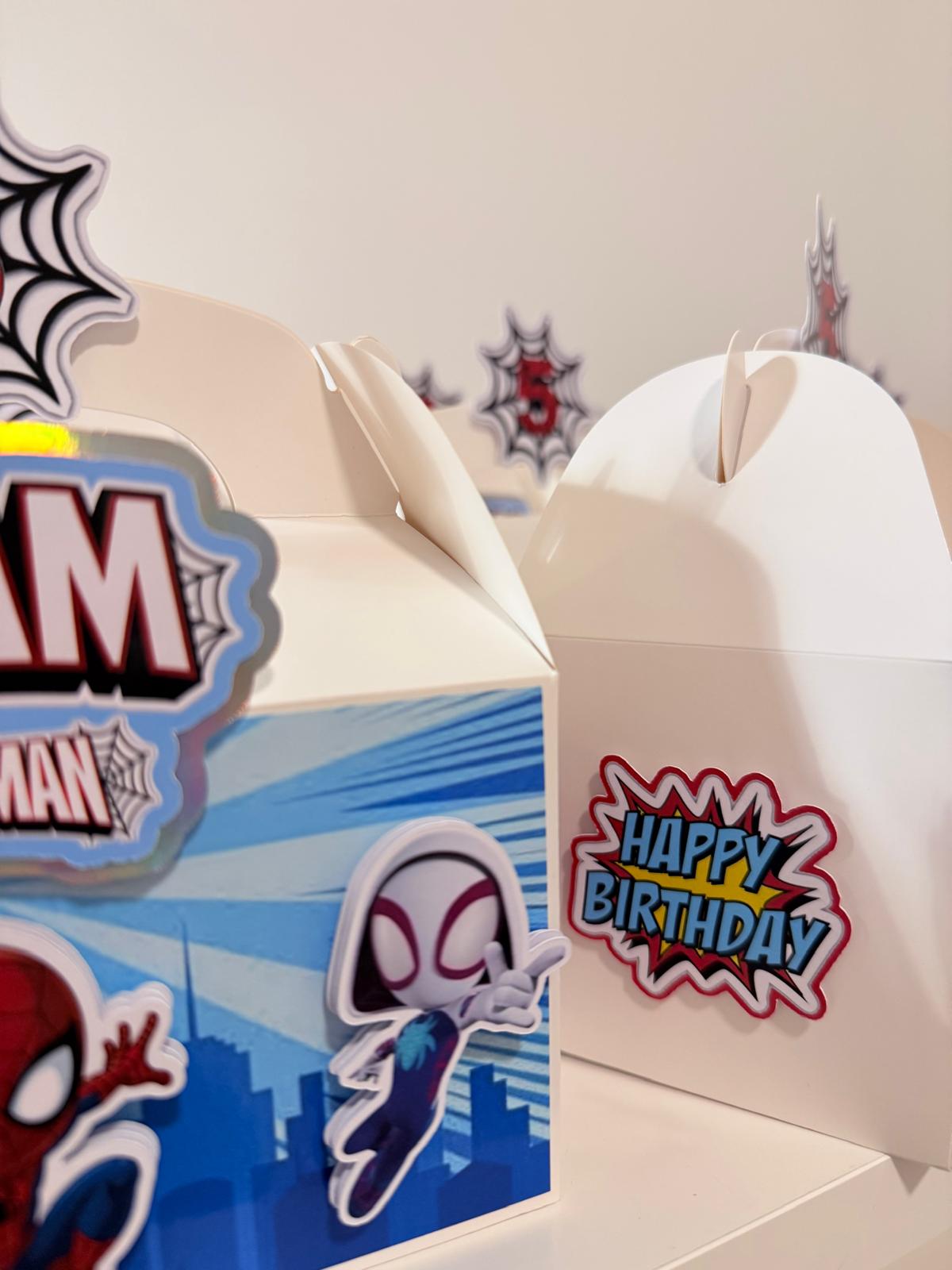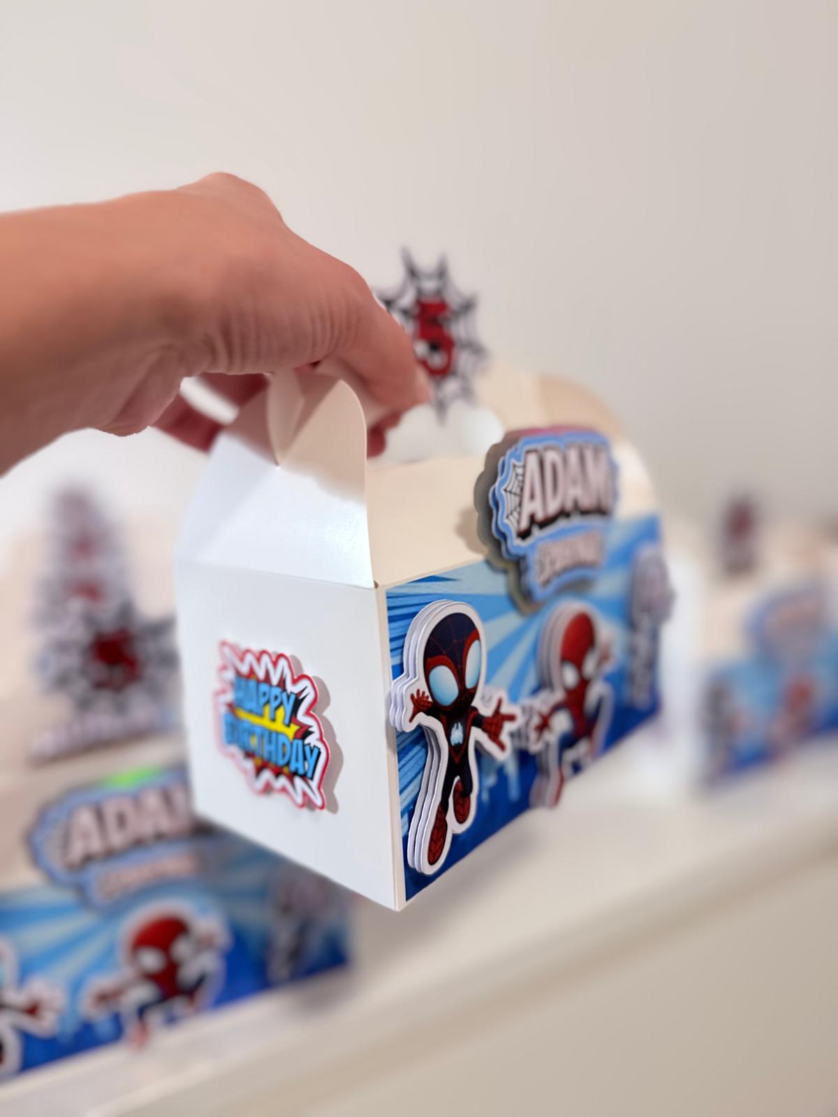 Each set includes a 3D personalised gable box, a drink, a Biscoff biscuit, plus a colouring book with pencil for added fun. Everything is fully personalised in your chosen theme, making it ideal for birthdays and themed parties.
